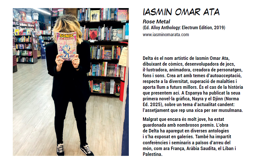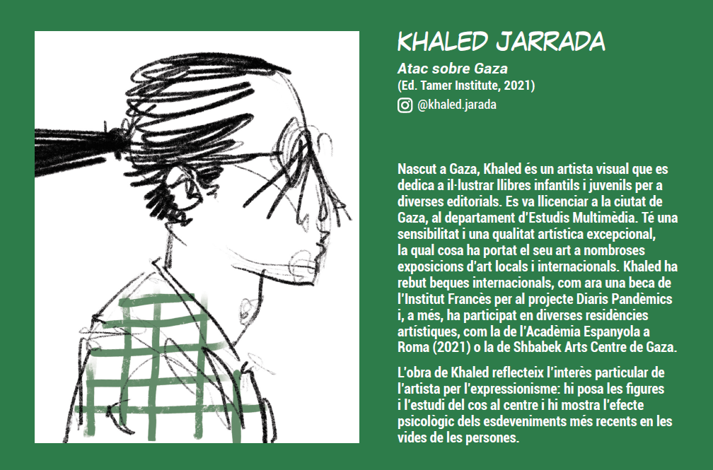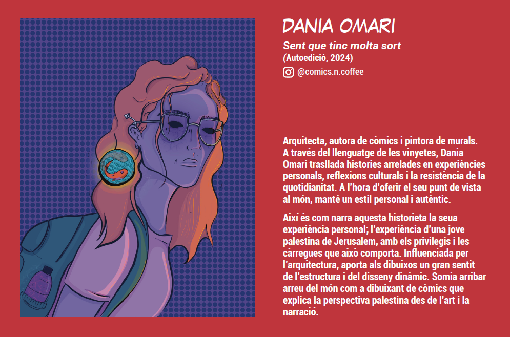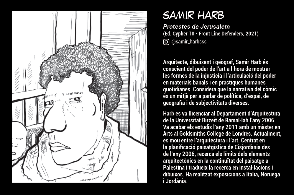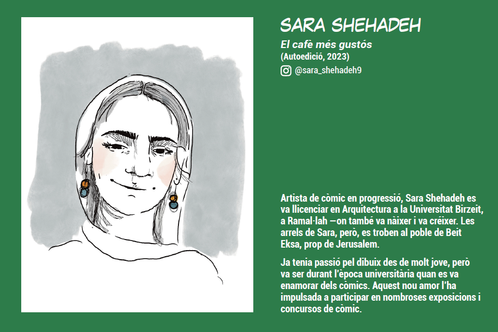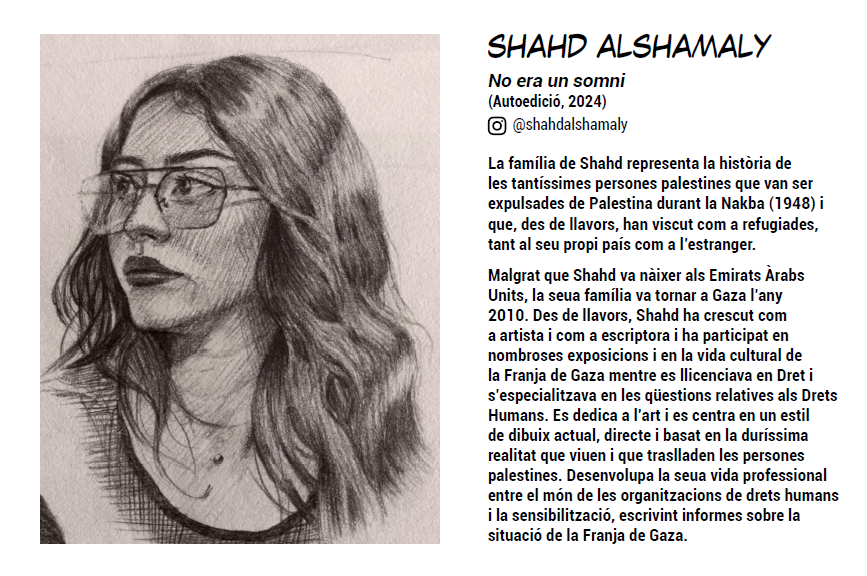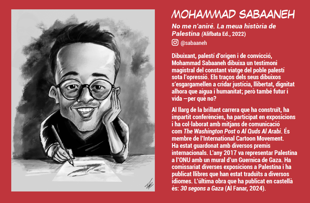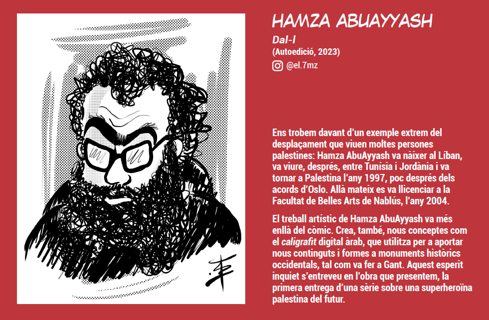 Ací, les artistes palestines i els artistes palestins reivindiquen històries —les seues històries—; veus —les seues veus— i futurs —per construir. Hi revelen, també, les lluites quotidianes, la resistència i la vitalitat cultural palestina. Aquesta exposició no és només una mostra artística: hi va més enllà. És una afirmació de l’existència, un desafiament a l’hegemonia i un testimoni de la perseverança dels relats palestins. Cadascun dels traços de tinta i cada lletra de cada vinyeta s’alcen contra l’oblit i declaren que les històries palestines es continuar explicant com un crit col·lectiu; es continuaran explicant fins que es faça justícia.