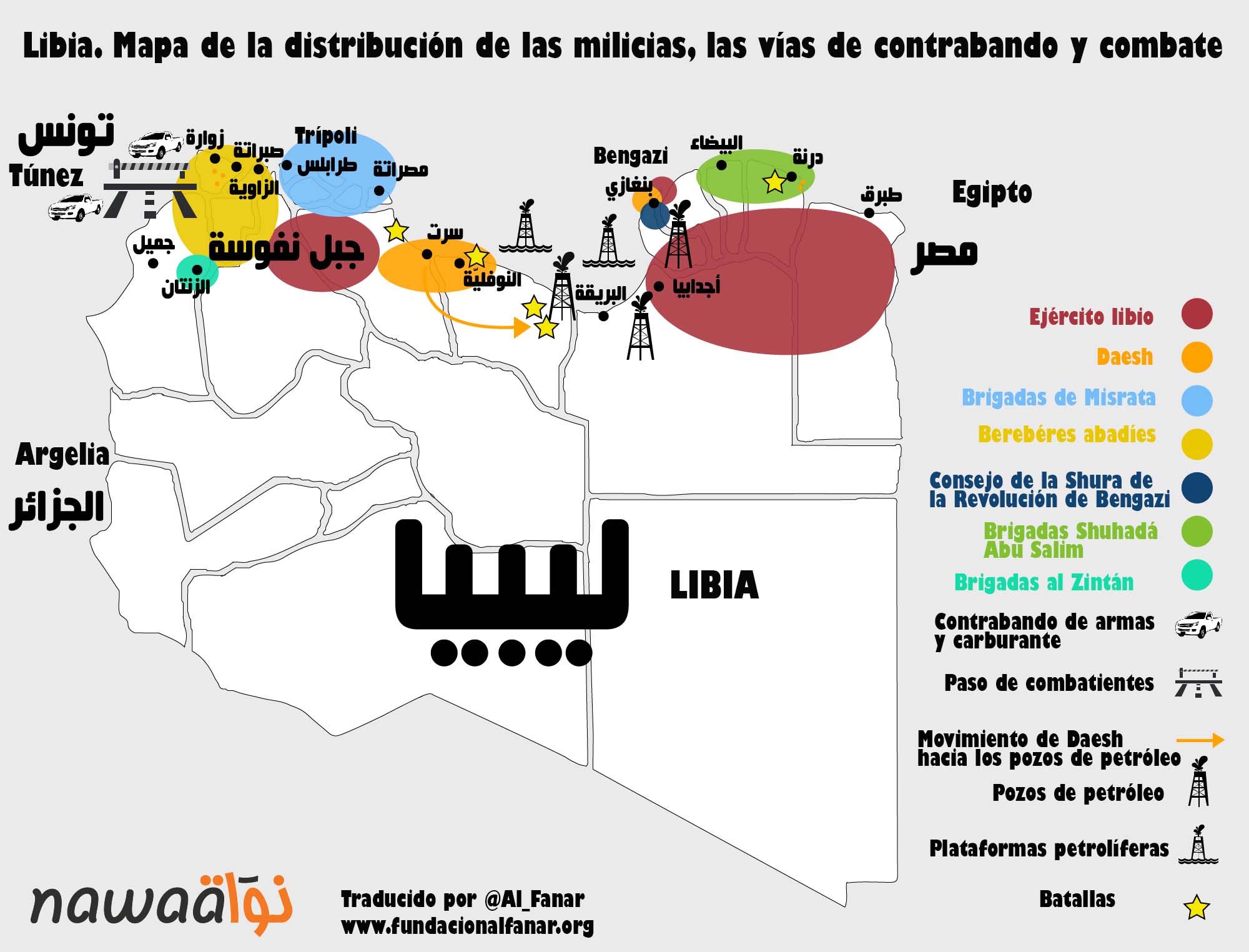 En este contexto, al margen de la radicalidad emiratí, las posturas de la UE y EE. UU. contrarias a implicarse directamente en el remolino de las arenas libias, empujan en dirección a operaciones aéreas intensivas que completen el papel de las tropas terrestres, que estarán formadas fundamentalmente por alianzas de las facciones libias encabezadas por el ejército nacional y las brigadas de Misrata, y que combatirán en el complejo mosaico que se extiende a lo largo del mapa libio.